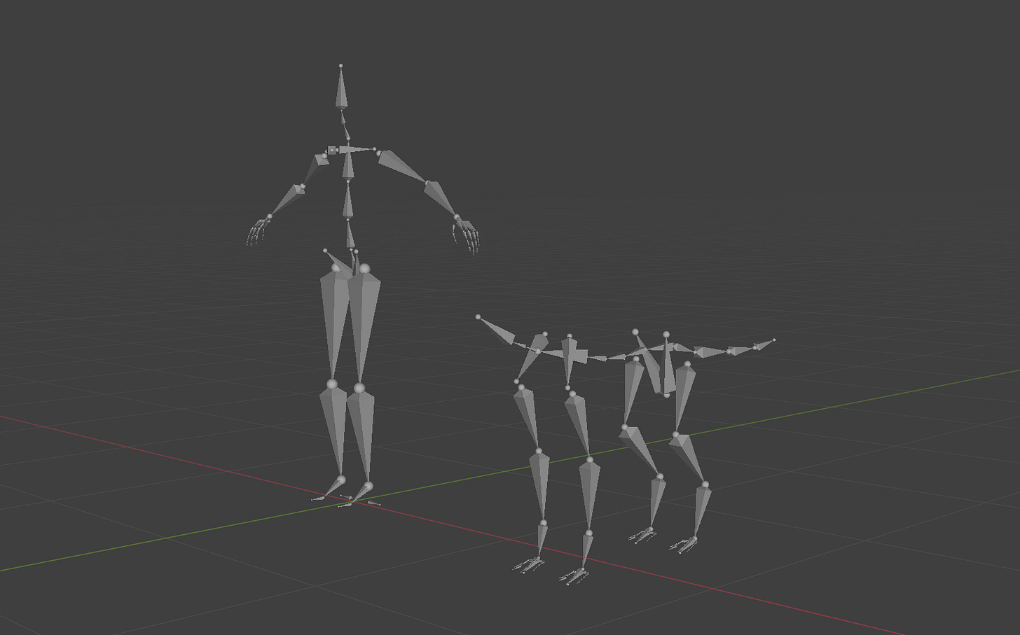 Here are how biped and quadruped skeletons are usually structured: