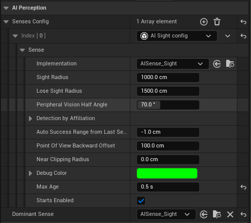 Gaze points of interest are determined by gameplay logic. The character uses Unreal’s AI Perception system to look for stimuli actors with an AISense_Sight config in the environment: